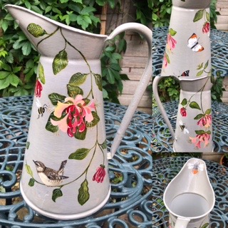 A vintage style curved jug with Blue Tits design, size typically 12" from base to spout. Each jug is individually sourced and the flowers are hand painted, with wrap round design. Ideal for flower displays or simply to be enjoyed as an unusual work of art in its own right.
