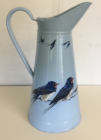 A vintage jug with Swallows design, size typically 14" from base to spout. Each jug is individually sourced and the birds are hand painted, with wrap round design. Ideal for flower displays or simply to be enjoyed as an unusual work of art in its own right.