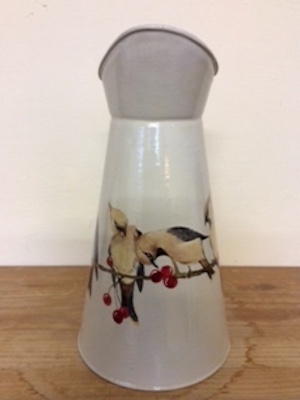 A vintage jug with Waxwings design, size typically 12" from base to spout. Each jug is individually sourced and the birds are hand painted, with wrap round design. Ideal for flower displays or simply to be enjoyed as an unusual work of art in its own right.