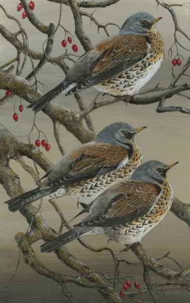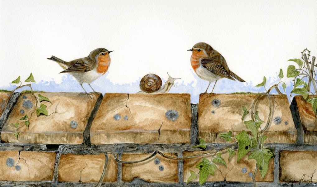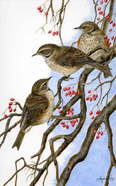 Blackbird, Robin, Sparrow 21" x 9" Framed