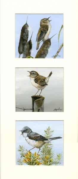 Sedge Warbler, Wren, White Throat 21" x 9" Framed