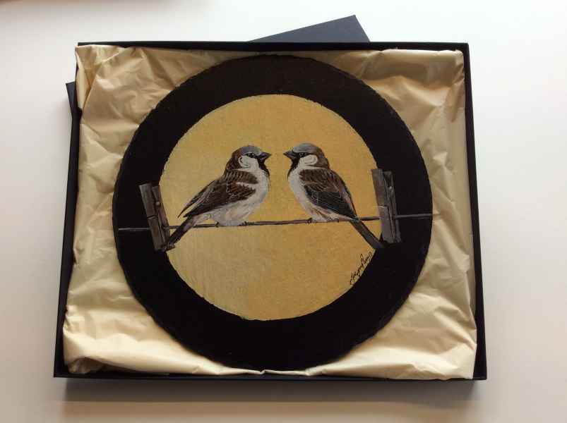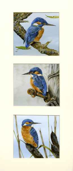 Wren, Sparrow, Pied Flycatcher Framed Size 21" x 9"