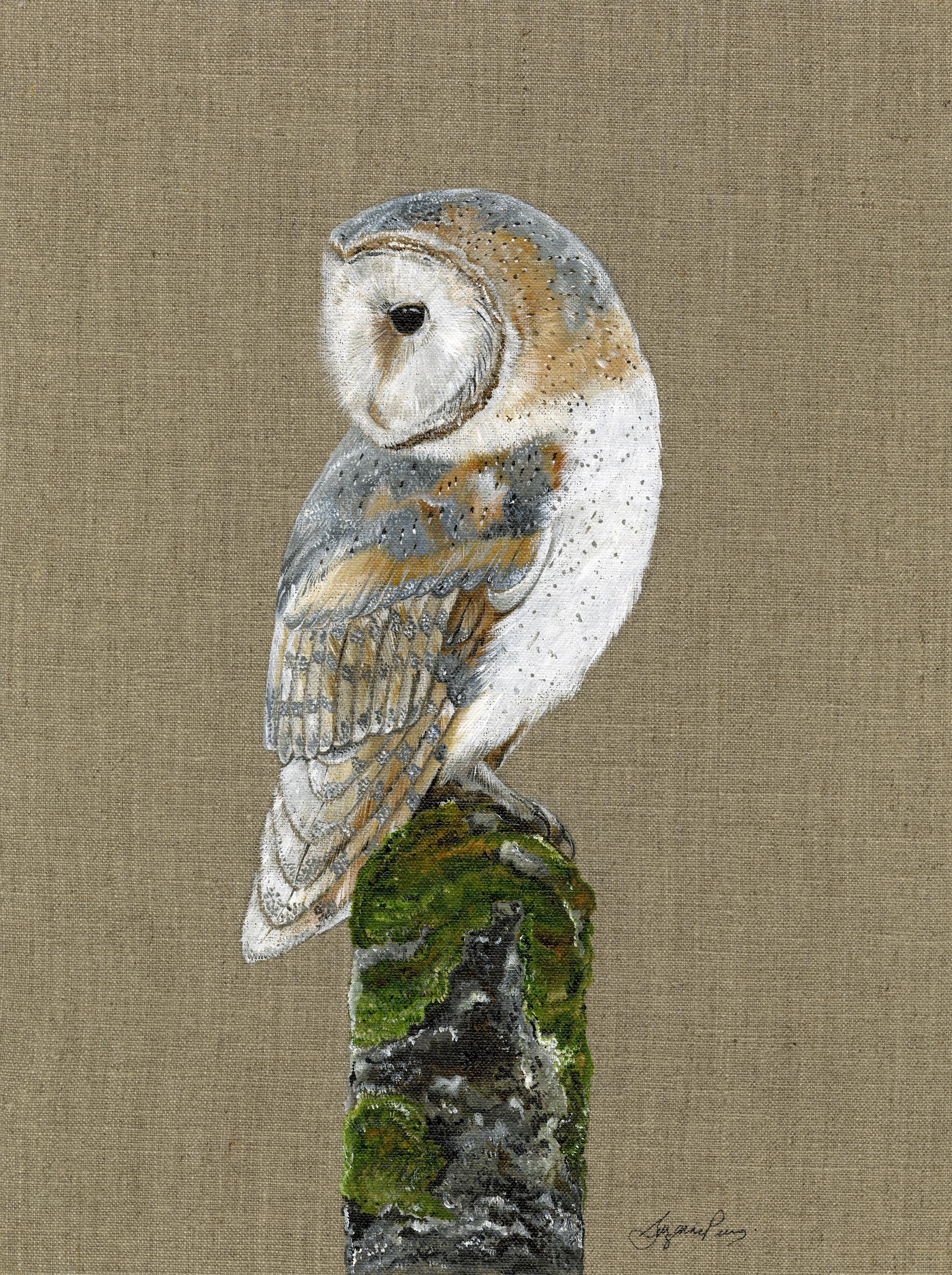 This female Barn Owl design is on Loxley clear primed linen canvas board. The linen fabric is laminated on to rigid, high quality medium density fibre board, which suits my style perfectly. The texture is obviously very different from the Crescent Board that I have been using for a long time and I am pleased how easily it has been to adapt. The look of the linen seems to complement my style of painting.
