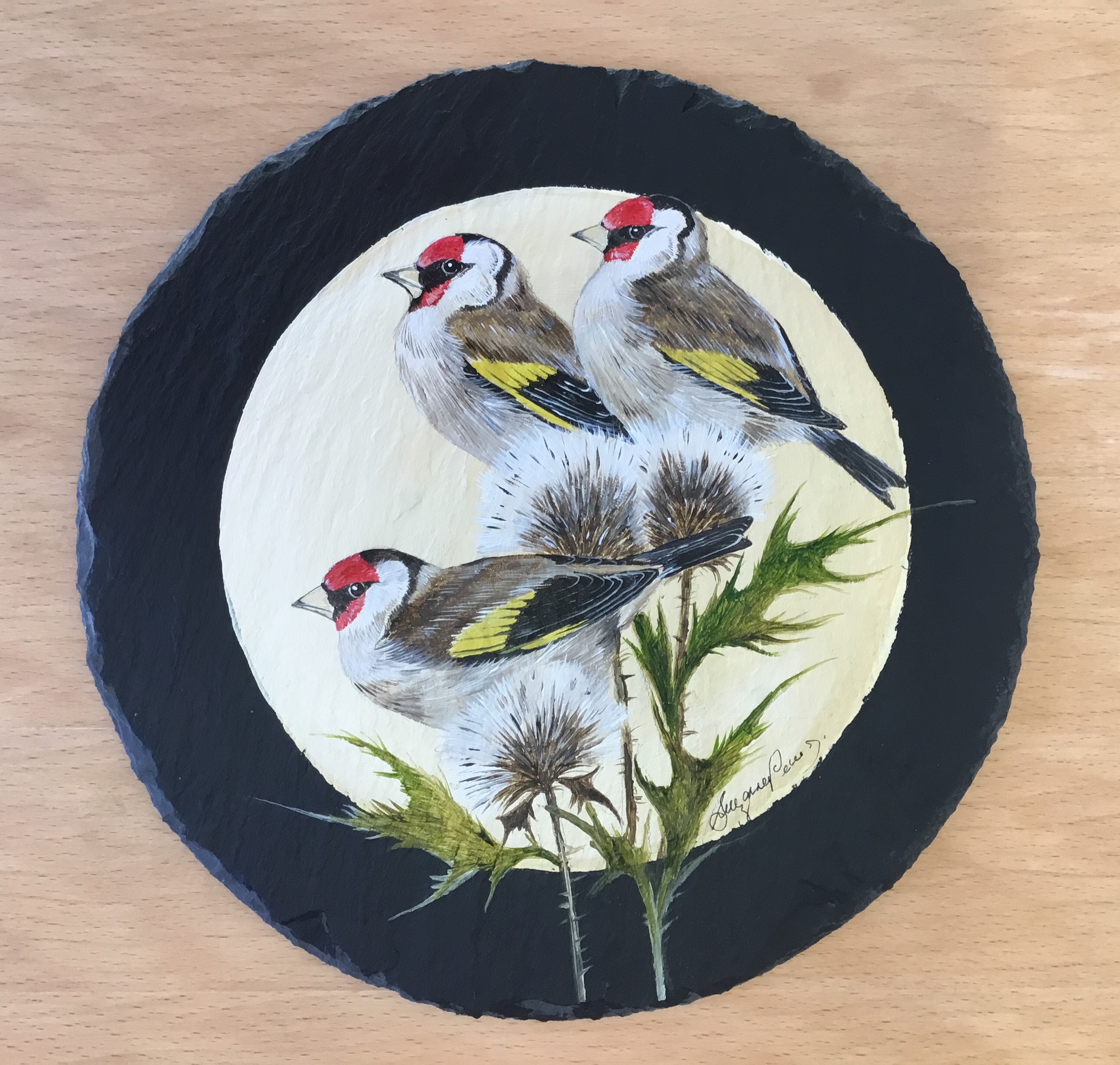 Goldfinches Hand Painted 10" Slate
