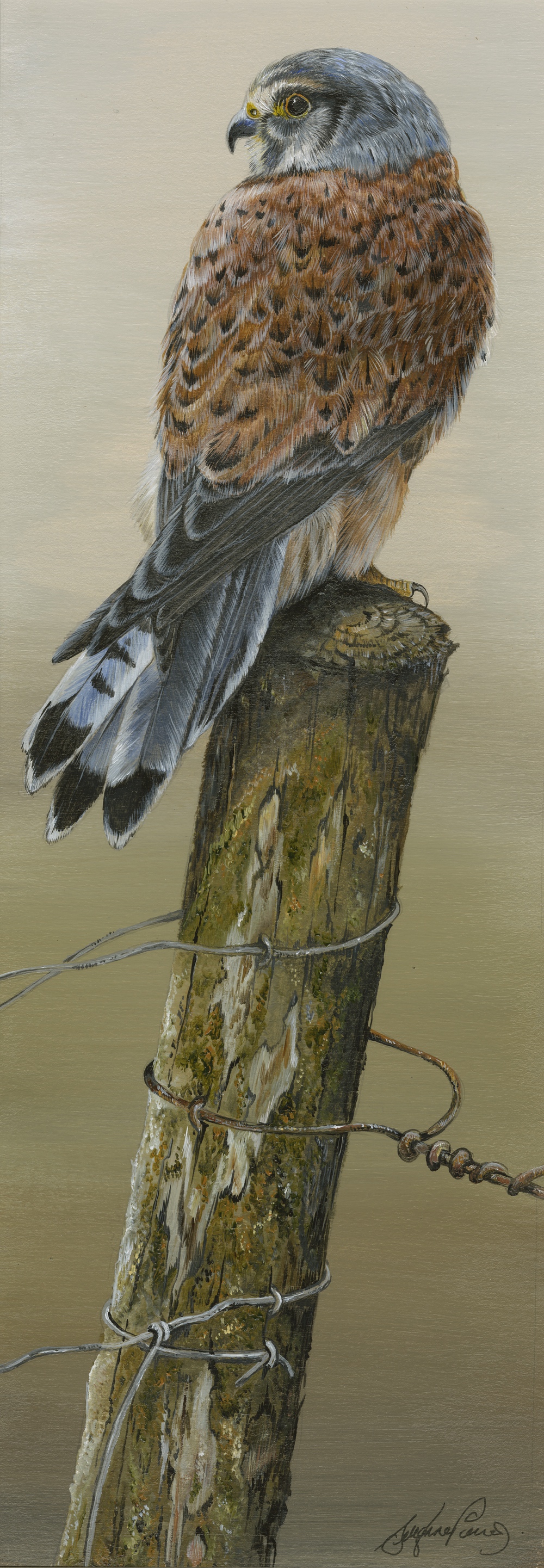 Framed 21" x 9", with non reflective glass, or mounted 17" x 6". A Kestrel giclee acrylic print, our subject looks around, ever on the guard, he is one of a limited 25 print run.