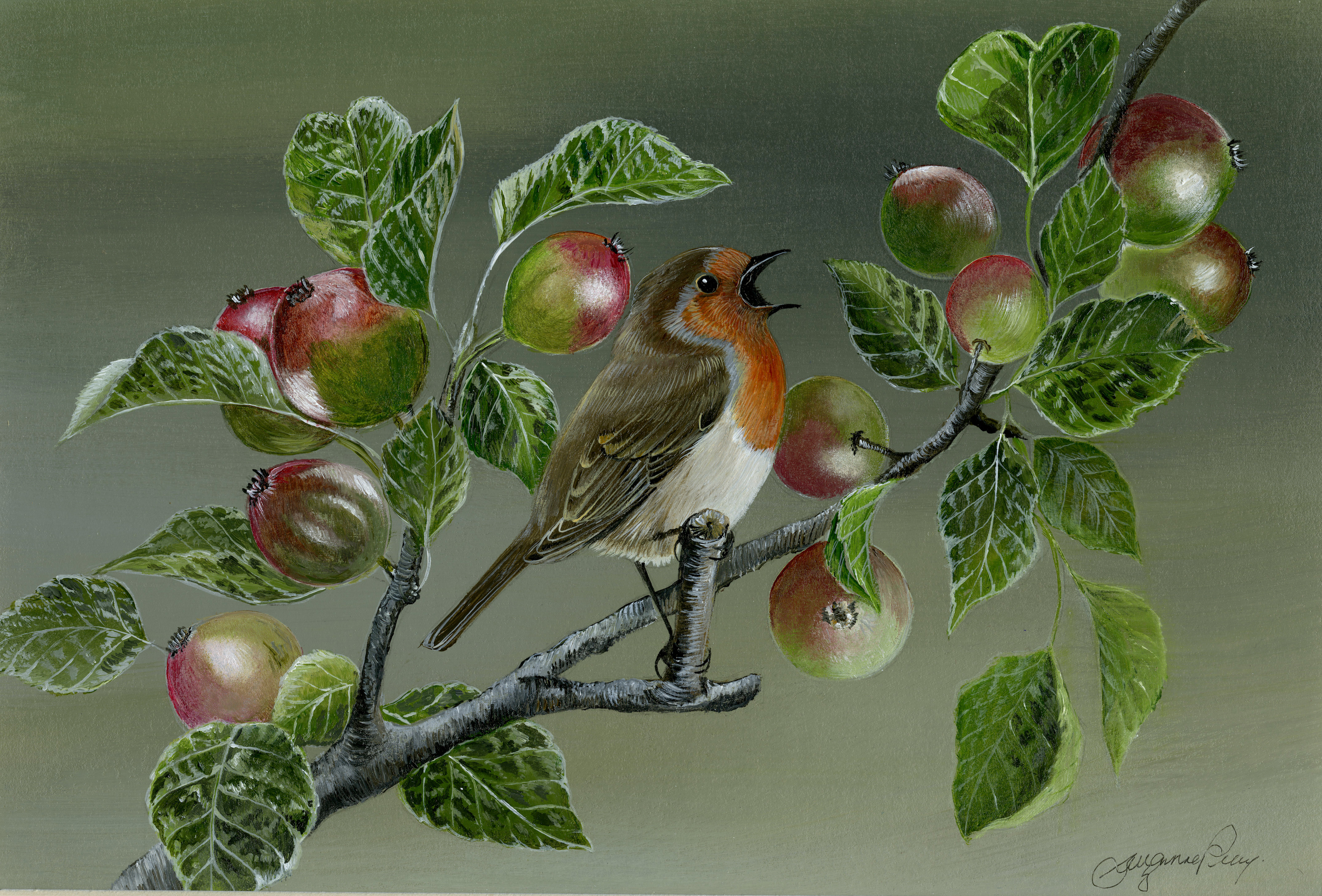 Framed 10" x 14", with non reflective glass   This Robin giclee acrylic print is bought as one of a limited 25 print run.