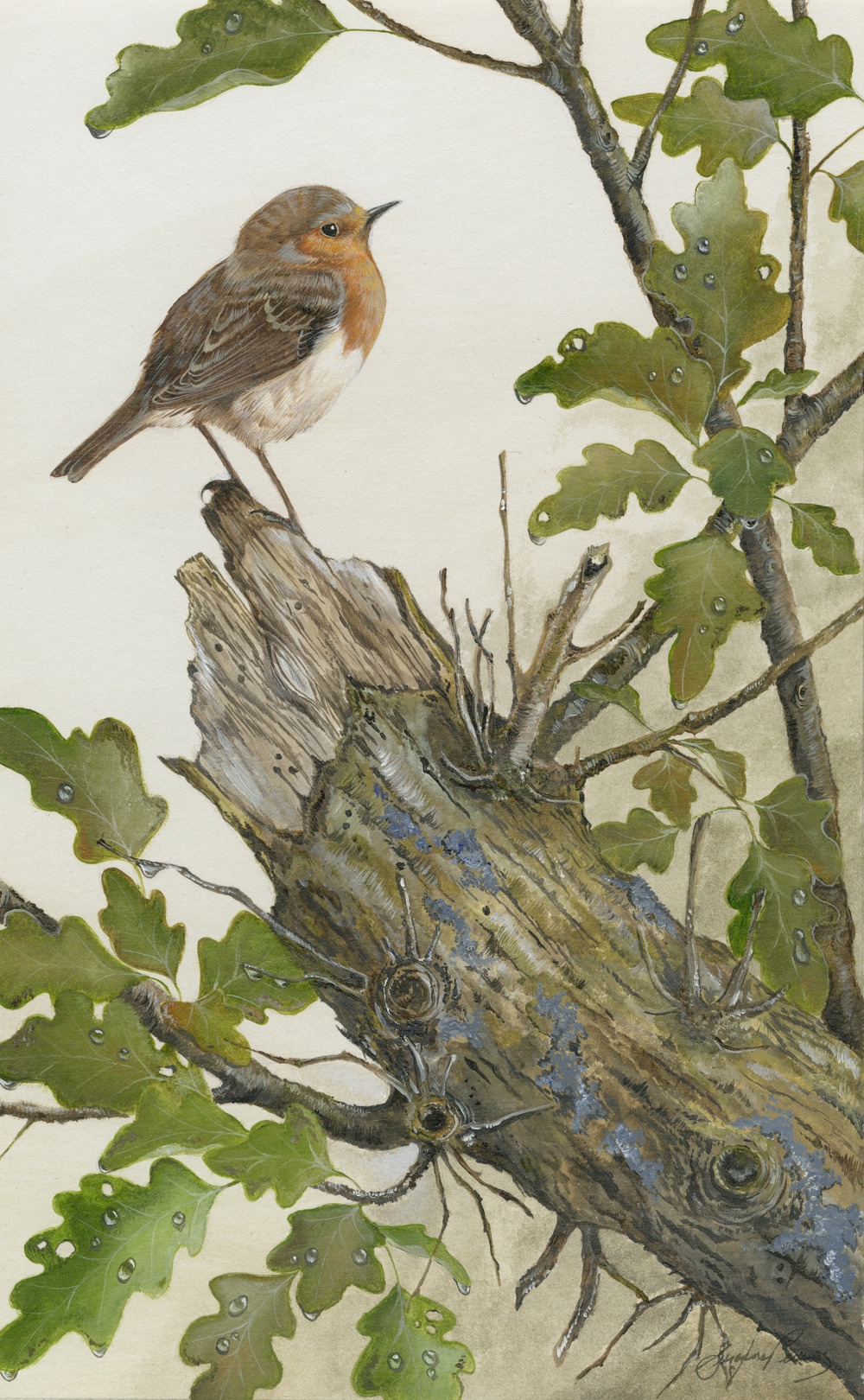 Framed 18" x 12", with non reflective glass, or mounted 14" x 9" Ever singing, our robin friend resting on a branch is one of a limited 25 print run.