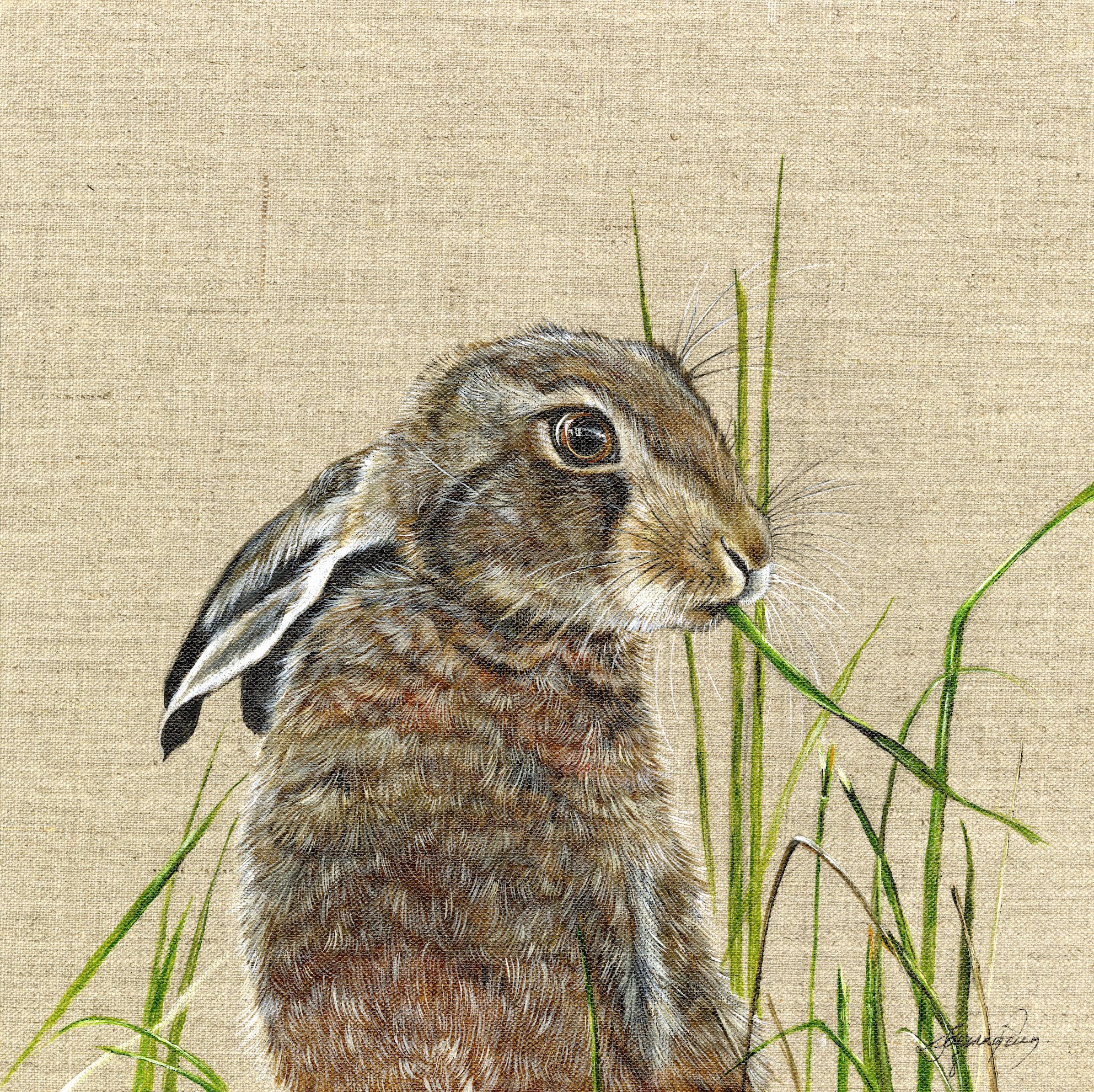 One of a 25 print run, this Hare print on canvas can be bought either framed (12" x 12") or mounted (10" x 10"). UK delivery prices can be viewed once the item has been added to your basket. For overseas orders, please write using the Contact Me Form.
