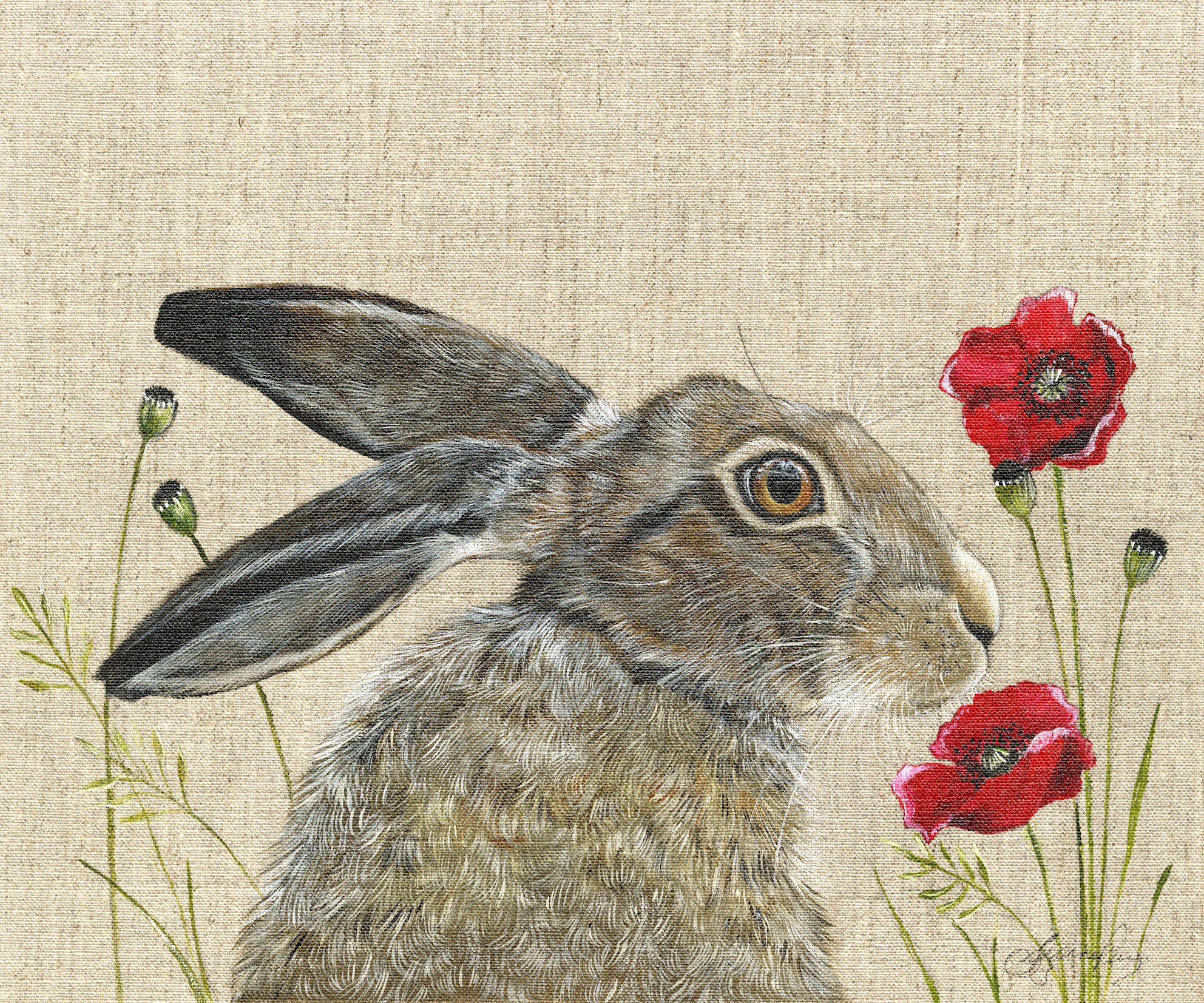 Framed 10" x 12", Mounted 8" x 10" with non reflective glass, or mounted  One of a 25 print run, this Hare print on canvas can be bought either framed (10" x 12") or mounted (8" x 10"). UK delivery prices can be viewed once the item has been added to your basket. For overseas orders, please write u ...Read more