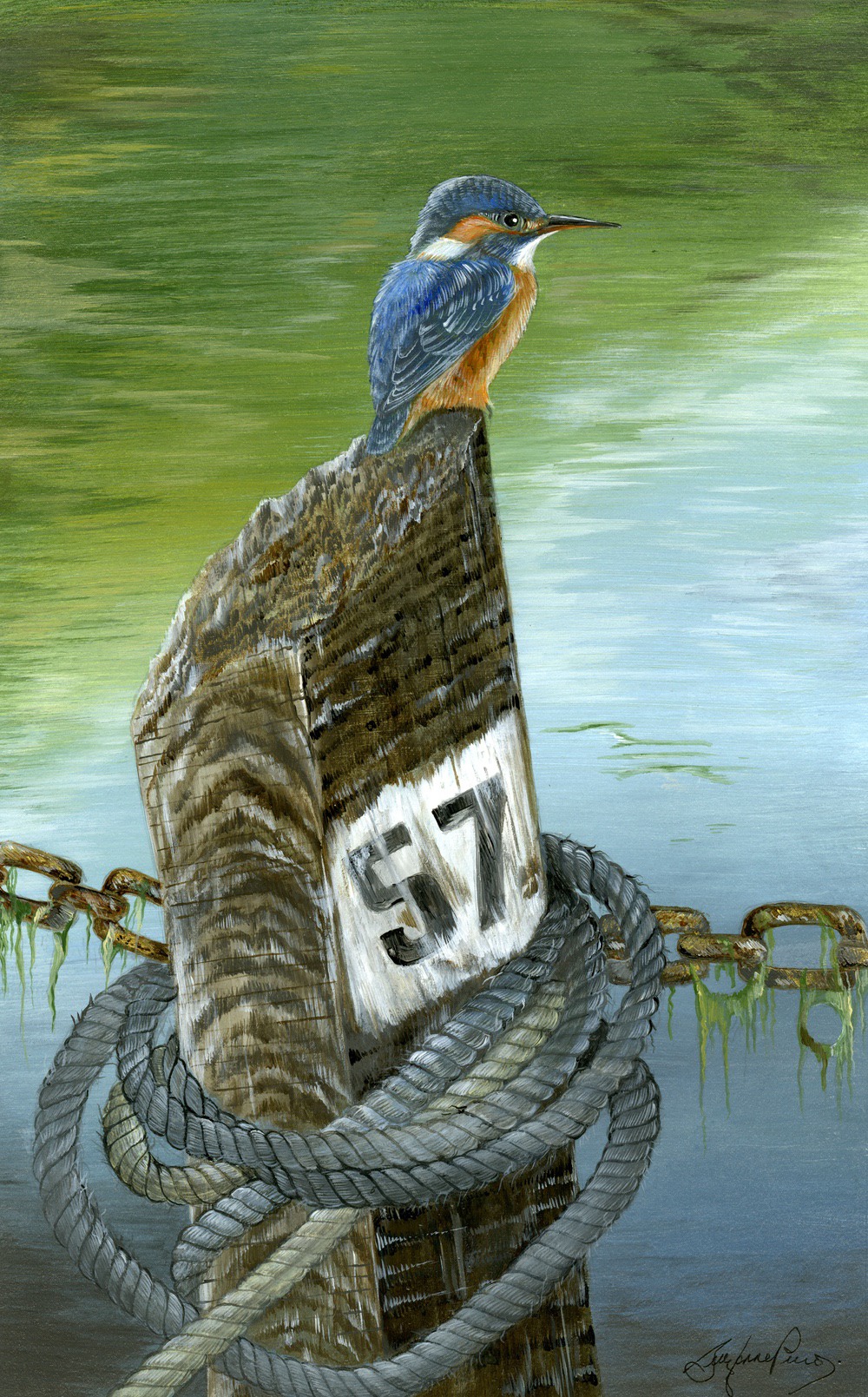 Framed 18" x 12", with non reflective glass, or mounted 14" x 9" Come in Number 57, our quay-side kingfisher can be bought as a giclee acrylic print and is one of a limited 25 print run.