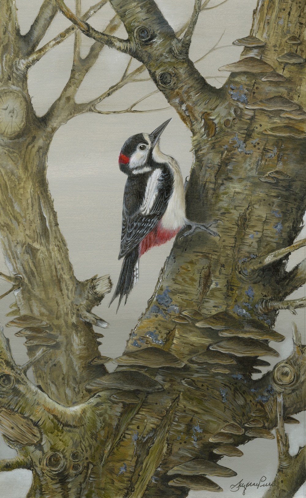 birds-fine-art-prints-great-spotted-woodpecker-heart-of-the-forest-suzanne-perry-art216