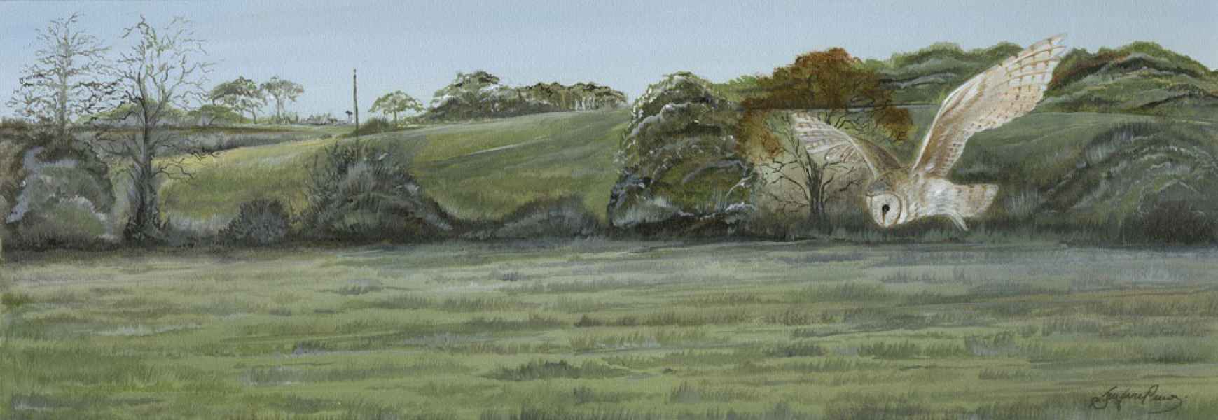 Barn Owl 9" x 21" Framed
