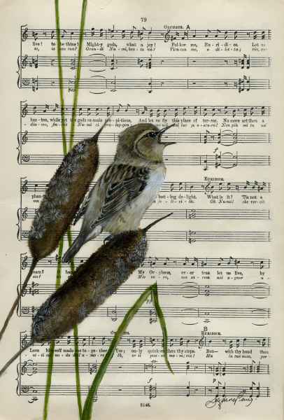 Sedge Warbler on Vintage Sheet Music