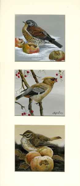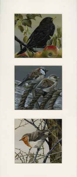 Blackbird, Robin, Sparrow 21" x 9" Framed