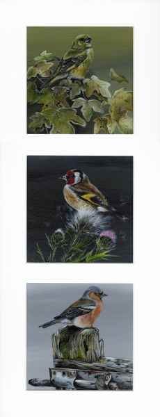 Greenfinch, Goldfinch, Chaffinch 21" x 9" Framed