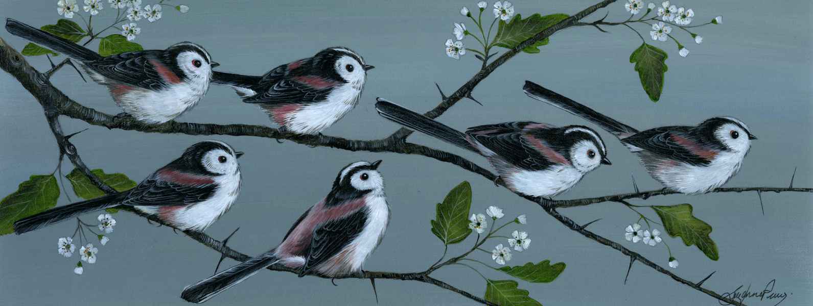 Long Tailed Tits 9" x 21" Framed