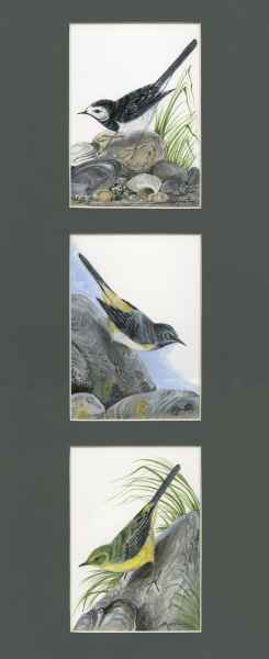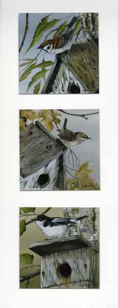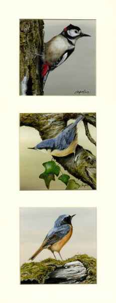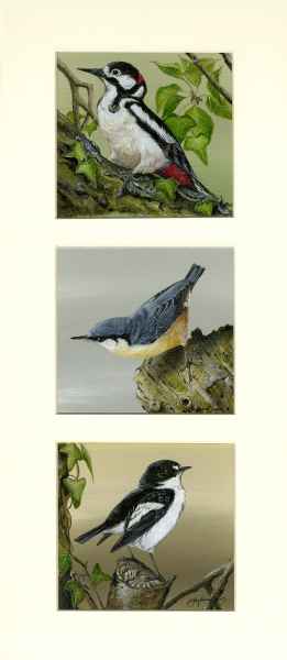Wren, Sparrow, Pied Flycatcher Framed Size 21" x 9"