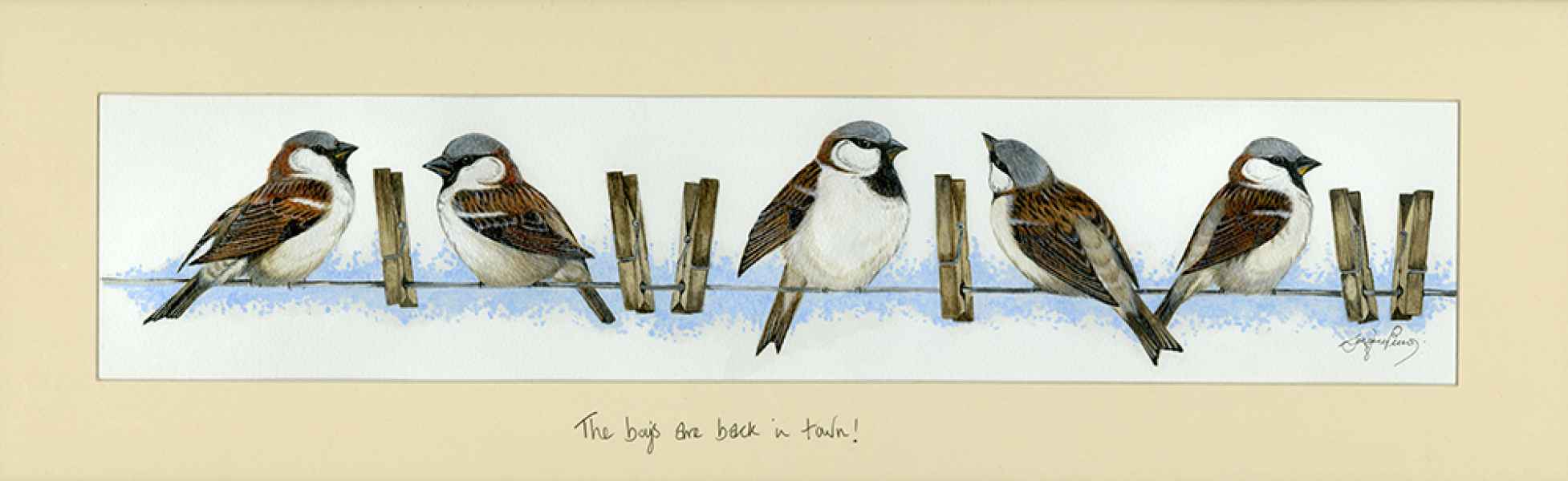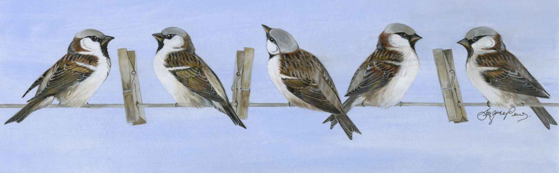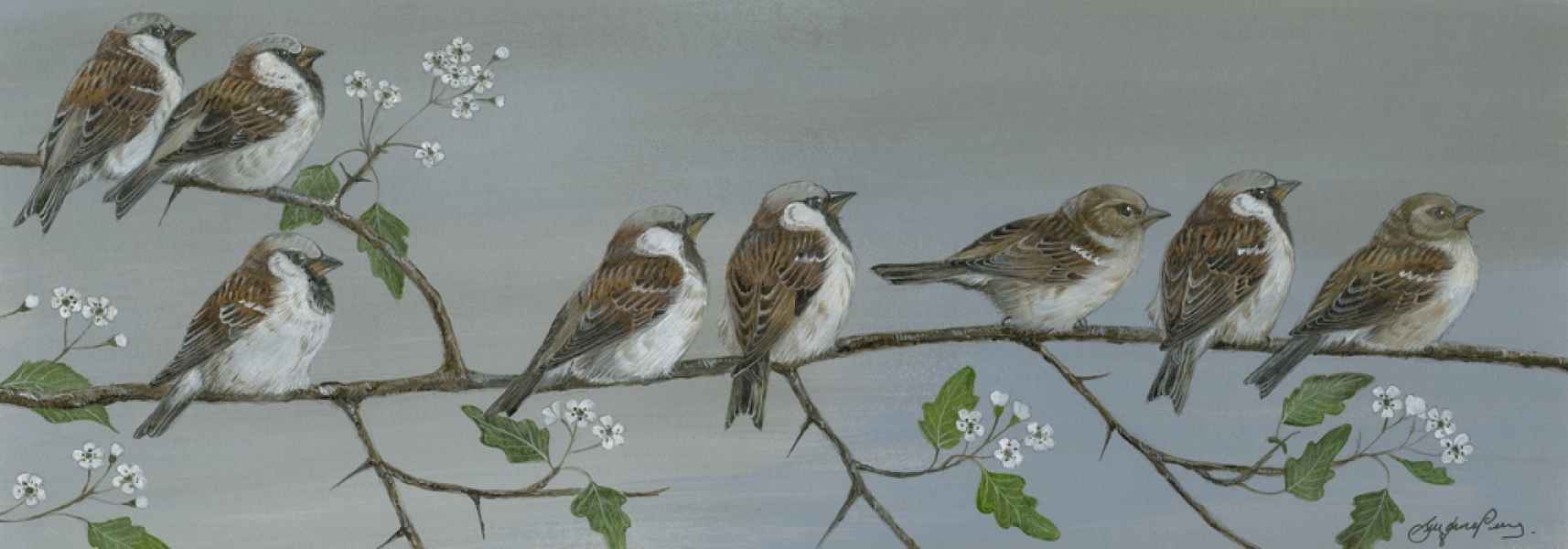 House Sparrows 25" x 9" Framed