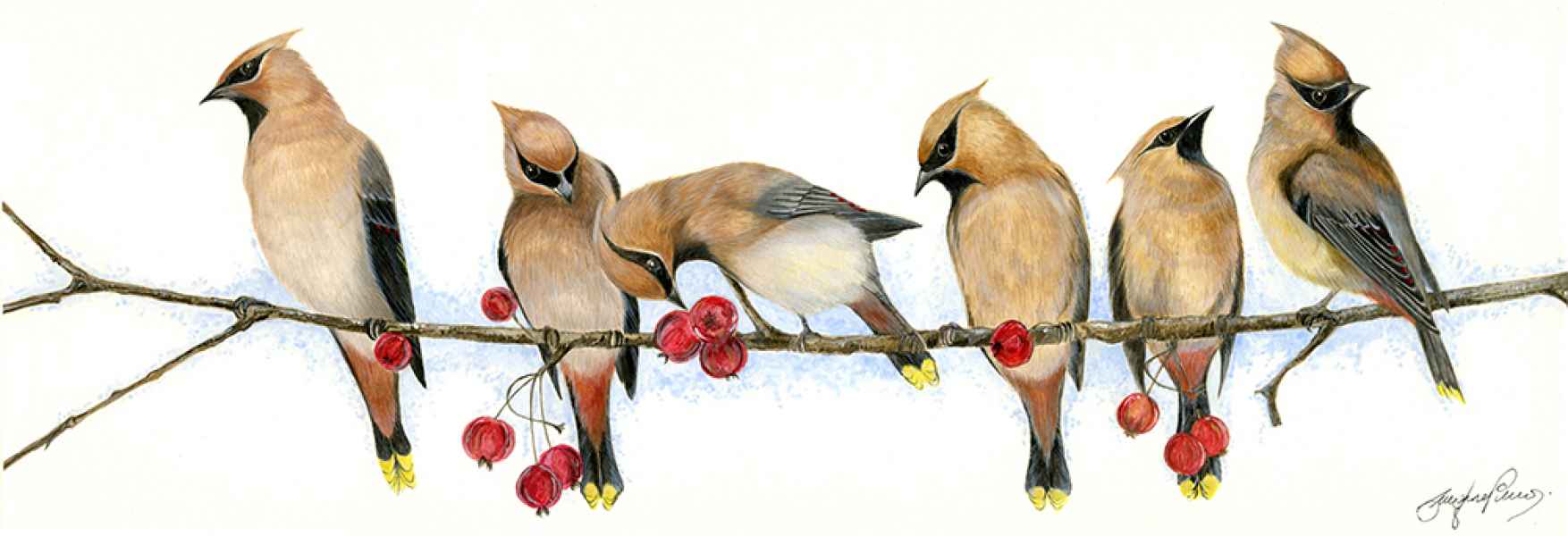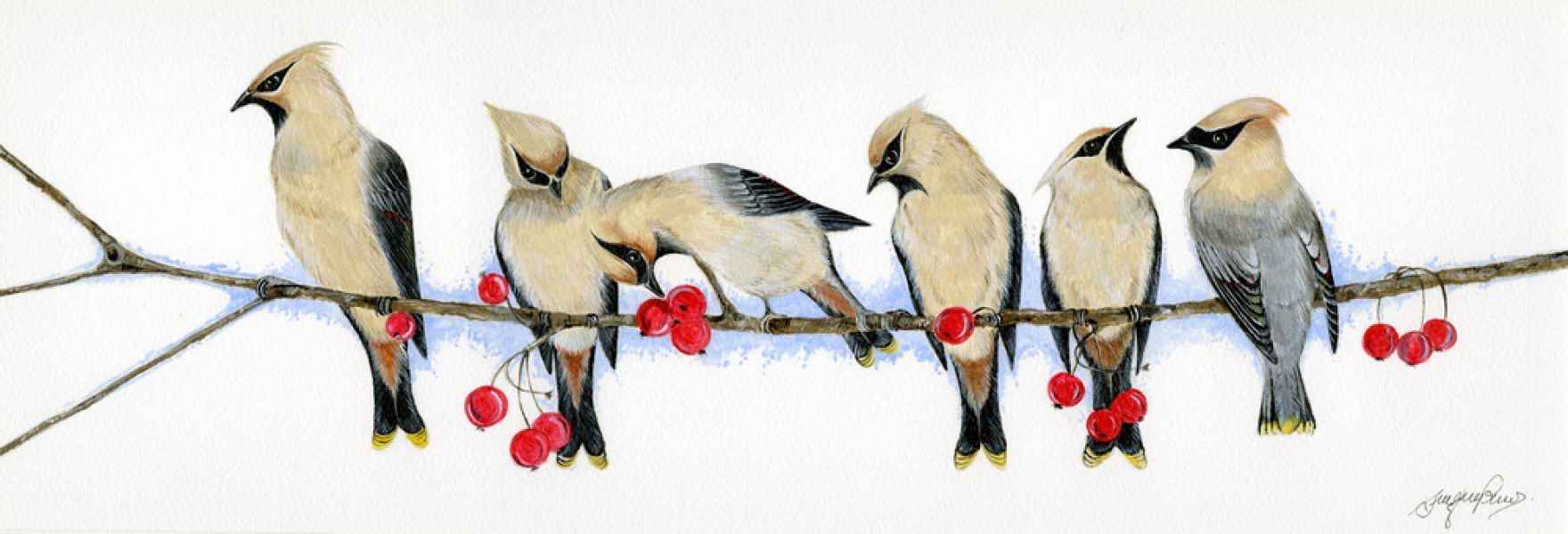Bullfinches 21" x 9" Framed