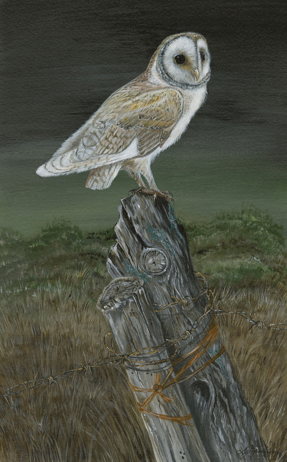 Framed Size 18" x 12", with non reflective glass. This particular Barn Owl was a commission by someone I met at the Hadleigh Show a few years ago. He commissioned this painting and has now bought a Little Owl and a Tawny Owl, so he is building up his collection! These will shortly be flying off to Australia to live.
