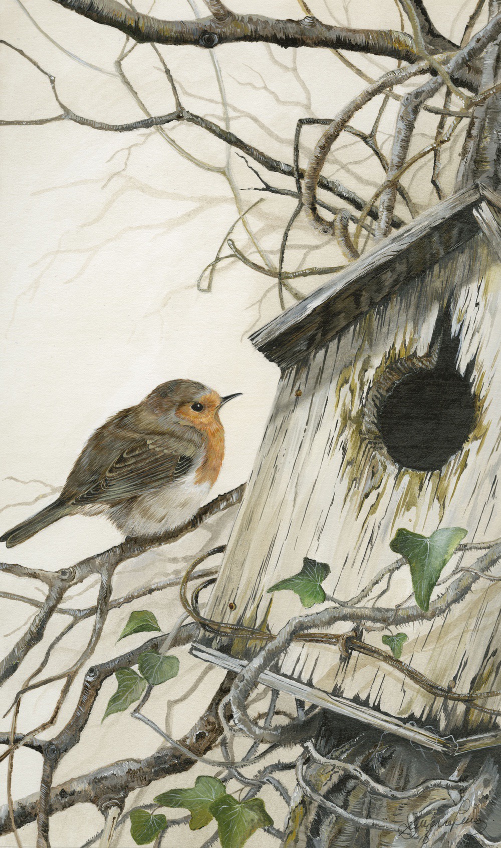 The painting is on Cold Press, extra heavy, off white Crescent art board and I aim to produce the finest detail in both the subject and its natural setting. The shade of the Daler mountboard is carefully selected depending on the painting, as is the toning of the frame itself.