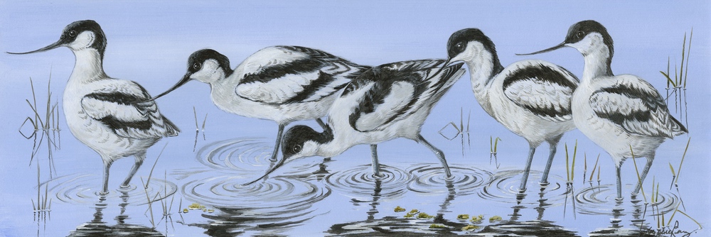 Framed size 9" x 21", with non reflective glass. After my first avocet original sold quite quickly, with prints appealing too, I was keen to paint another, this time seeing these strikingly attractive waders closer.