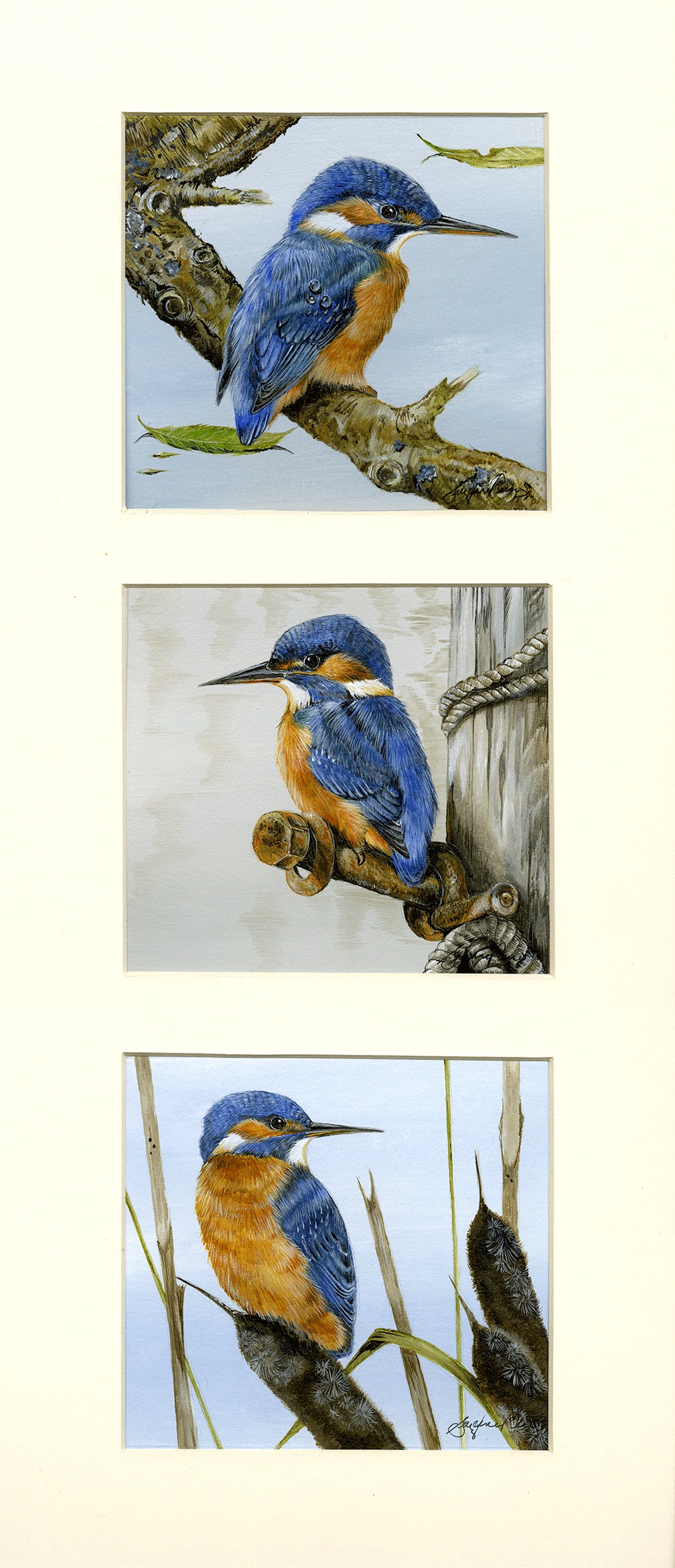 Framed size 21" x 9", with non reflective glass. A trio with class, these bird images have been used very successfully as some of my cards and they have been most popular too! SOLD at Birdfair 2019.