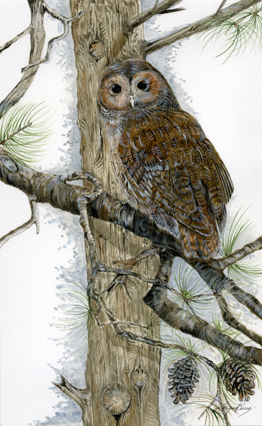 Framed Size 18" x 12", with non reflective glass. An early Tawny Owl of mine, quite successful however, with many subsequent prints selling. It was also subject of a Facebook competition to name it. The price was a print of course. The original SOLD privately.
