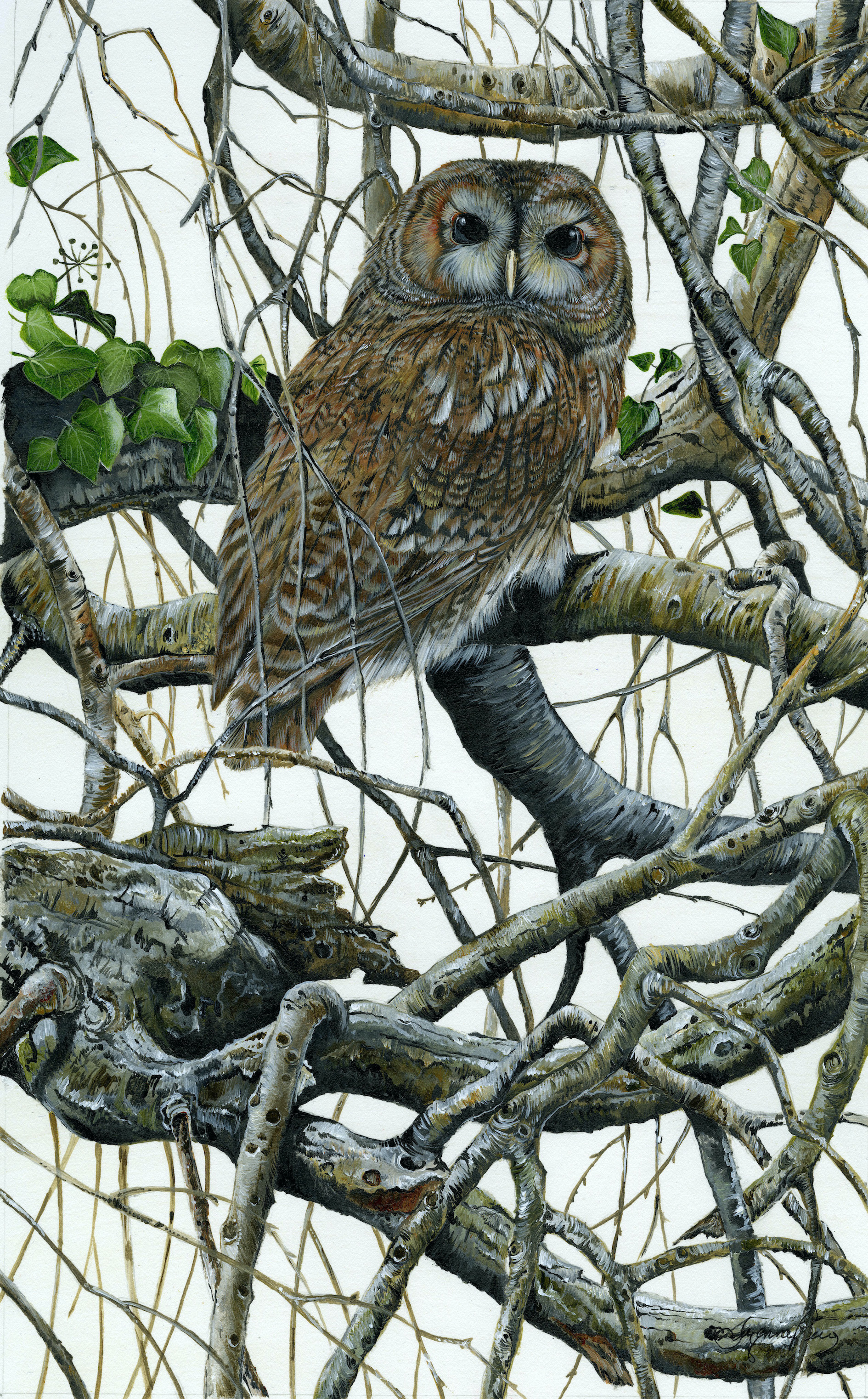 Framed Size 18" x 12", with non reflective glass. Possibly the most involved setting for one of my Tawny Owls. It certainly attracted a lot of attention on various Facebook Groups. The original SOLD privately.